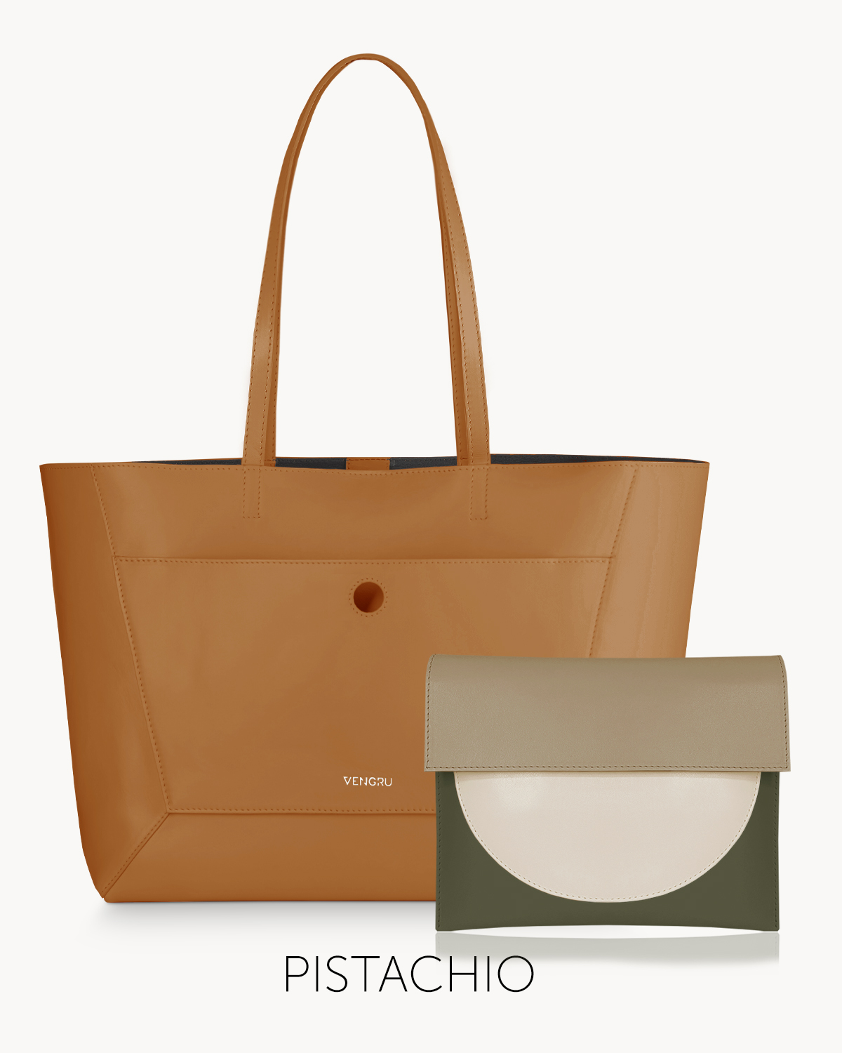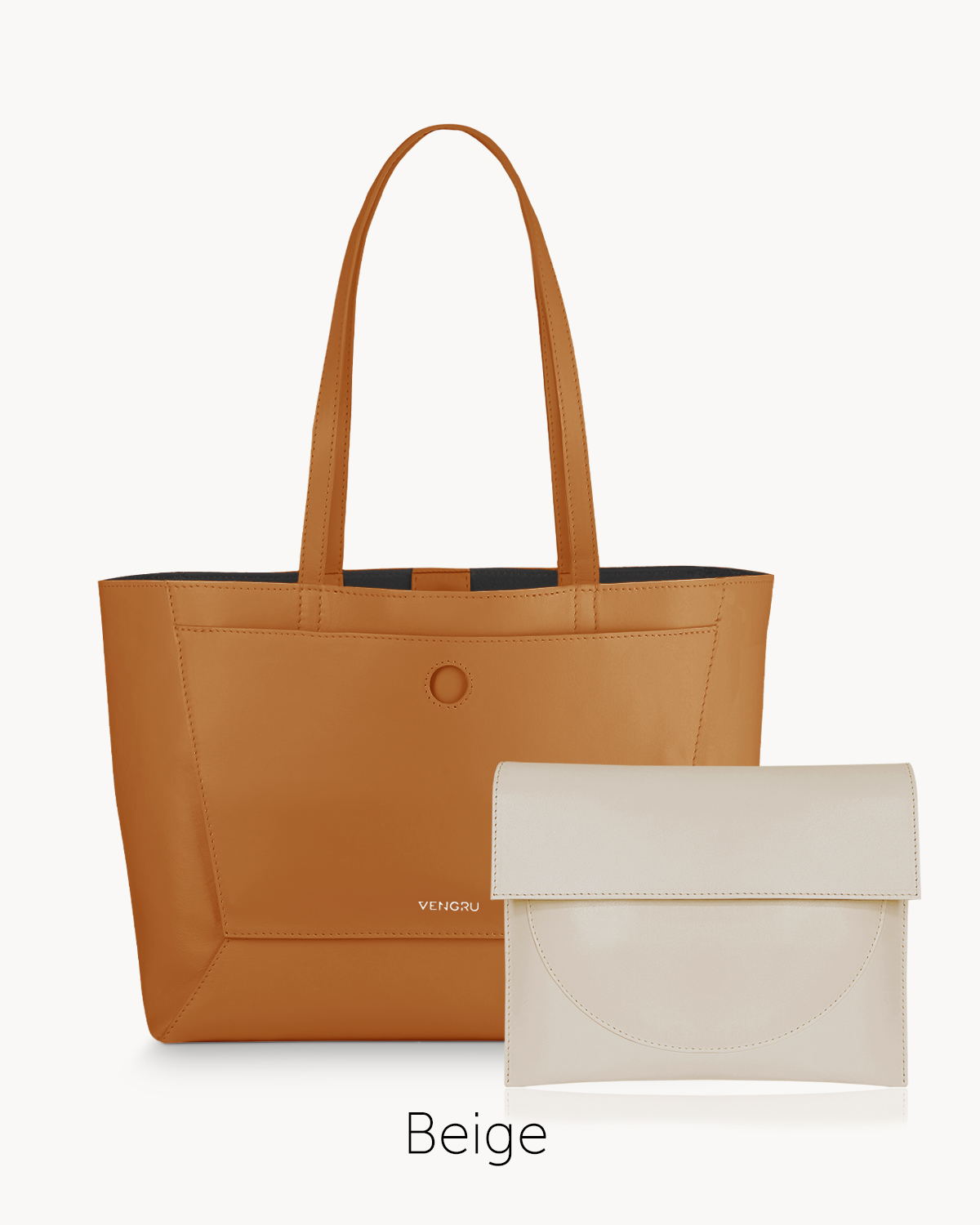 A VNGR üzleti táska különlegessége az elülső zseb, amelyhez egy elegáns U borítéktáska illeszthető. Ez a kiegészítő nemcsak díszítőelem, hanem önállóan is használható – elegáns kis bőrtáskaként, bőr keresztpánttal vagy lánccal. Az U borítéktáska prémium olasz bőrből készül, bélésbőrrel bélelt, és kompatibilis minden VNGR alaptáskával, valamint a V3 vászonshopper kollekcióval.