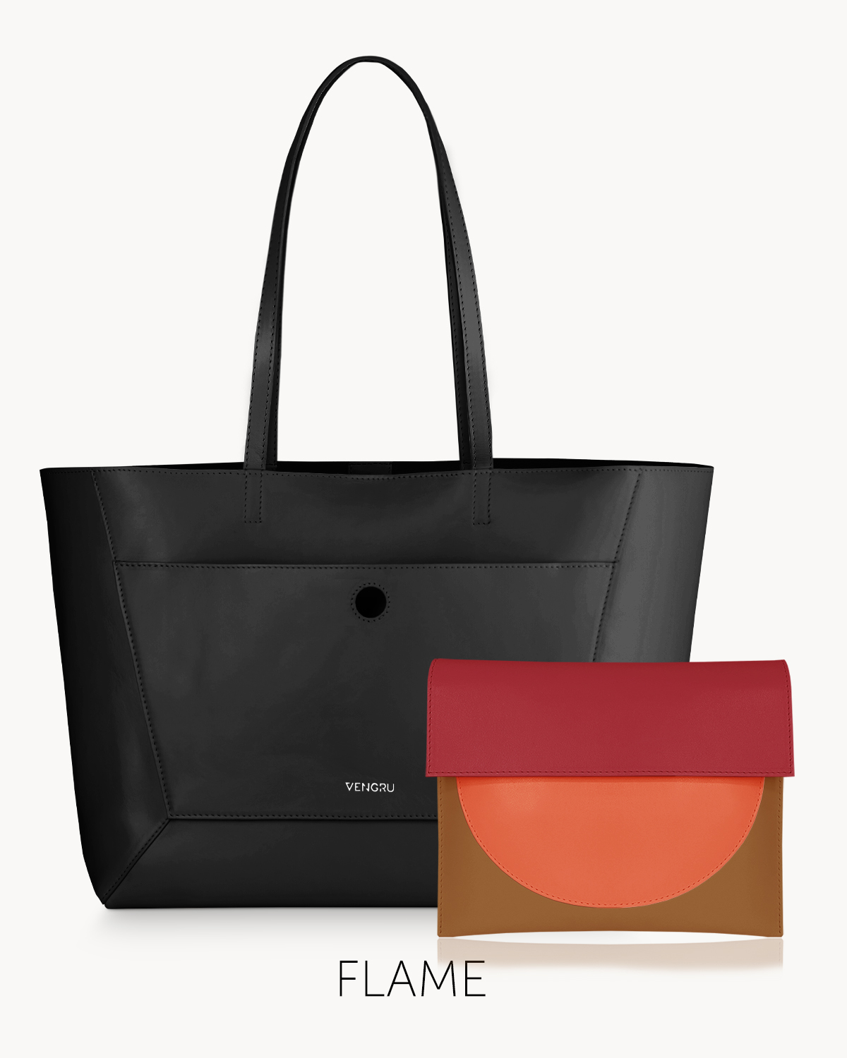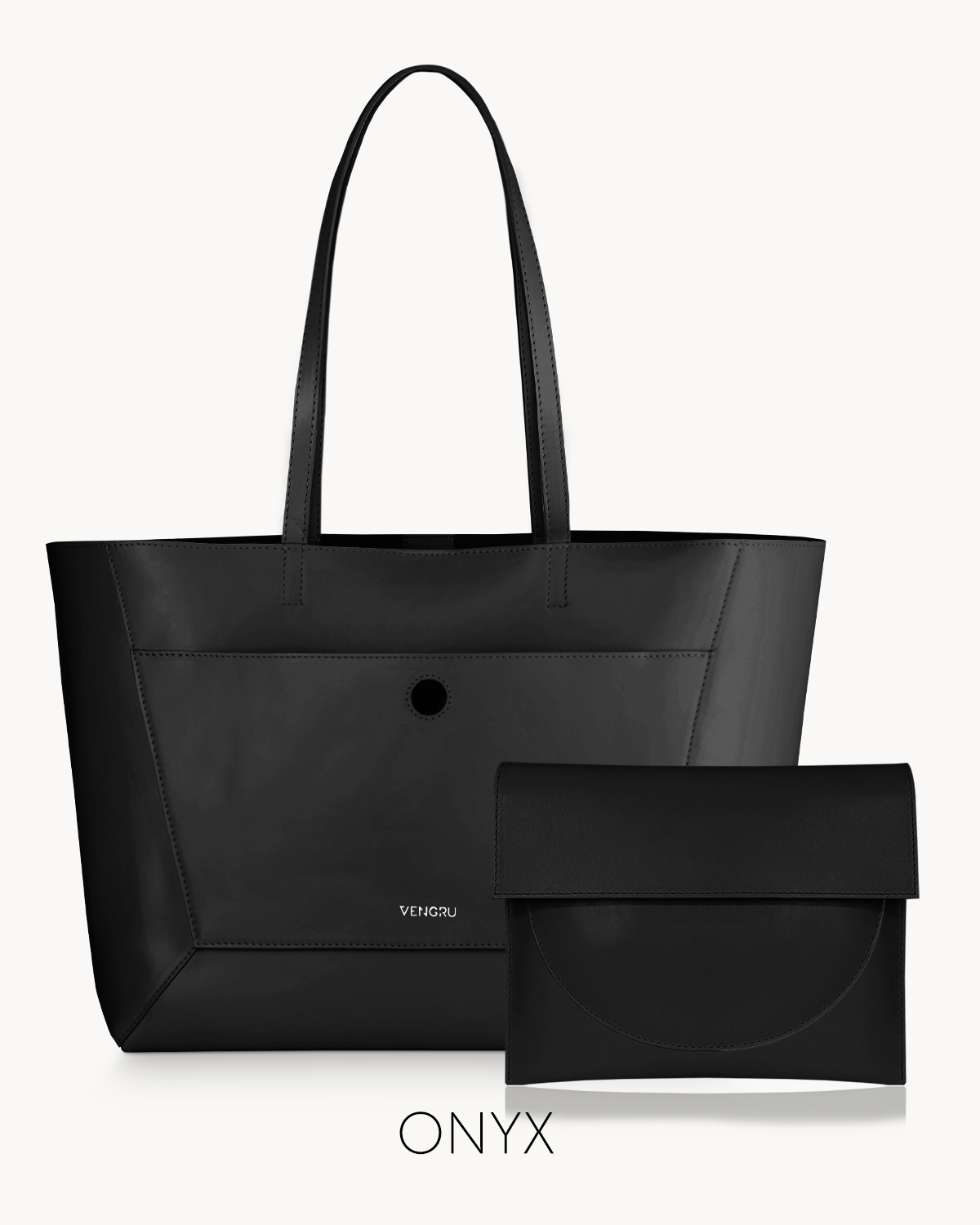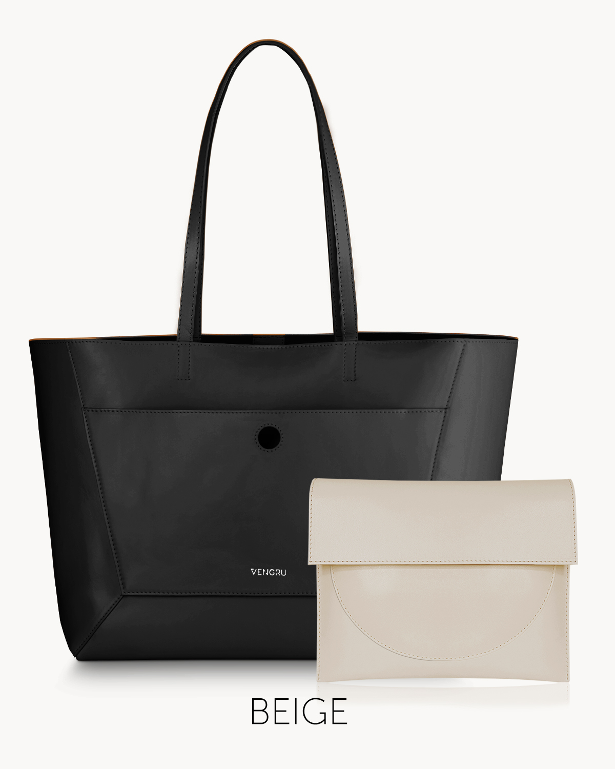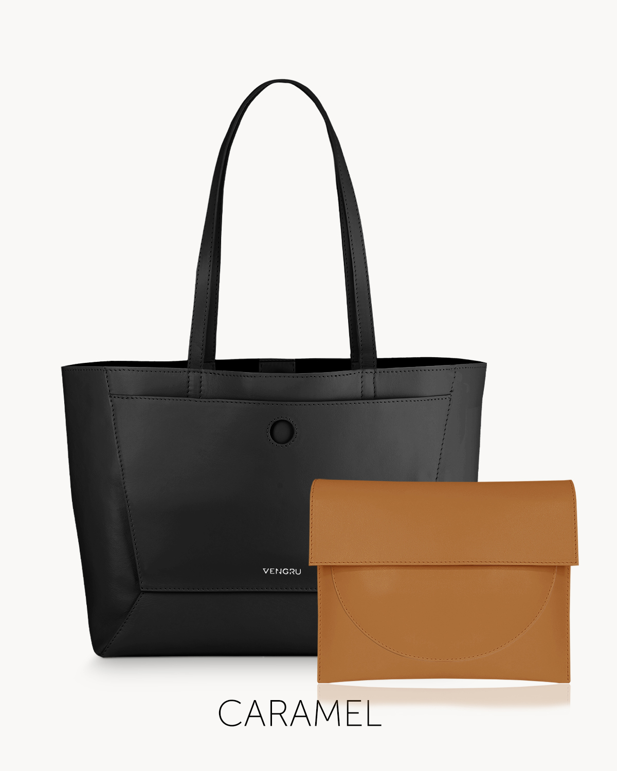 A VNGR üzleti táska különlegessége az elülső zseb, amelyhez egy elegáns U borítéktáska illeszthető. Ez a kiegészítő nemcsak díszítőelem, hanem önállóan is használható – elegáns kis bőrtáskaként, bőr keresztpánttal vagy lánccal. Az U borítéktáska prémium olasz bőrből készül, bélésbőrrel bélelt, és kompatibilis minden VNGR alaptáskával, valamint a V3 vászonshopper kollekcióval.
