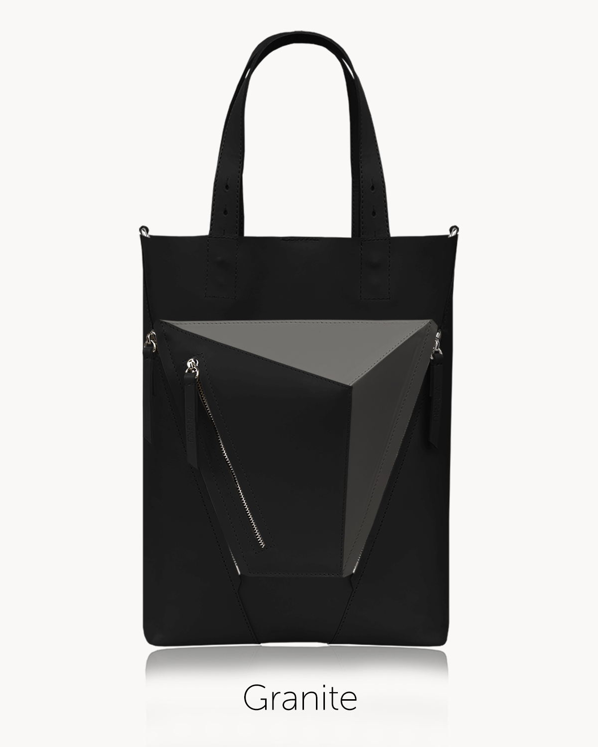 Shopper variálható táska szett GRANITE. Az elején található cipzárakkal egy külön kiegészítő elem, egy paneltáska is illeszthető az alaptáskához, ami által teljesen megváltozik a külleme.