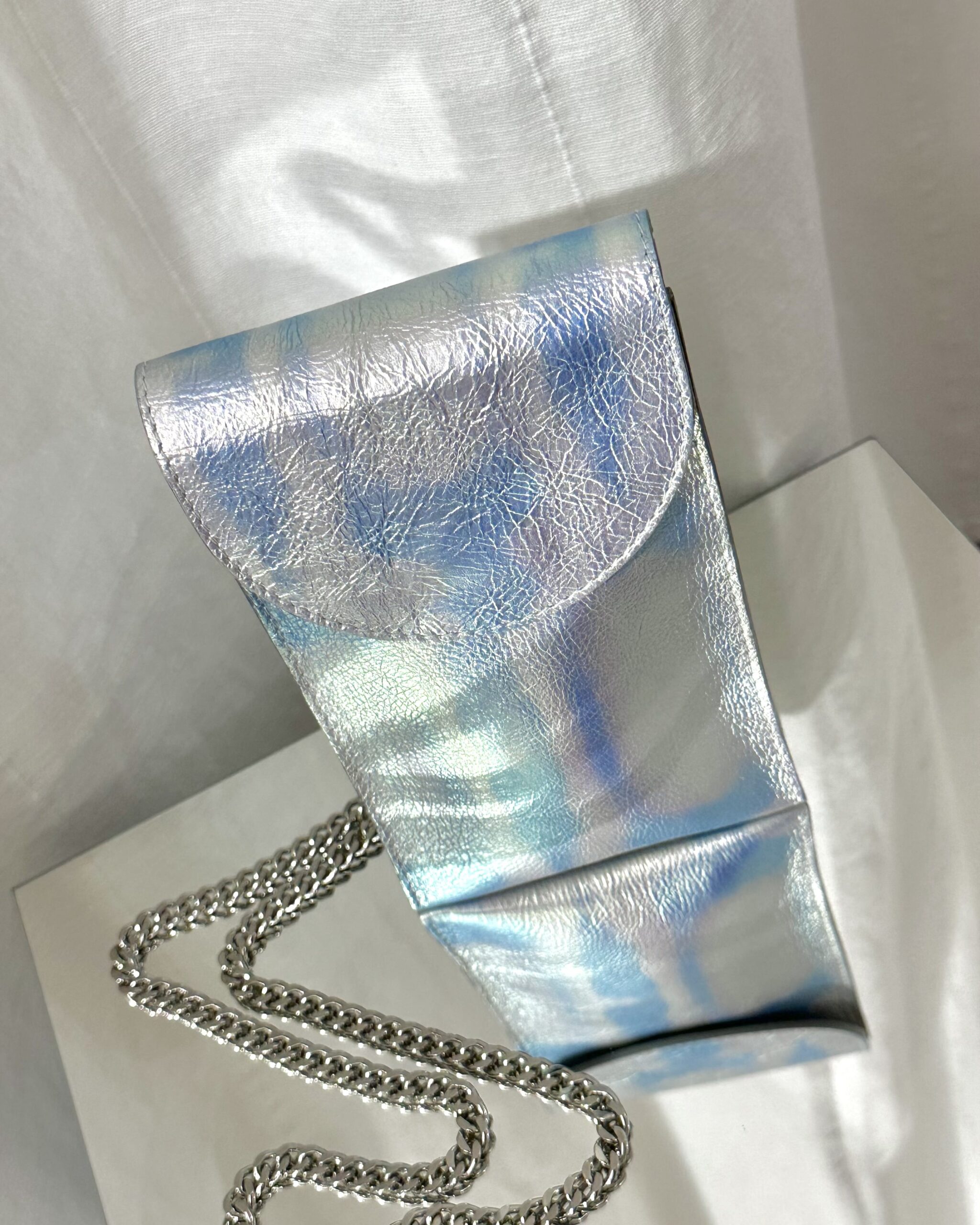 Az U mini táska metal shell – lánccal egyedi, bőr, minimalista, unisex, crossbody kistáska. Különlegessége, hogy 3 színből áll. A táska fedele, az eleje és a háta is más színű, ami még egyedibbé teszi a táska megjelenését. Gondosan kidolgozott, praktikus és elegáns. Tökéletes lehet egy városi sétára, az esti kikapcsolódáshoz, partyhoz is. A keresztpánttal vagy egy lánccal, akár övvel is kényelmes viselet.