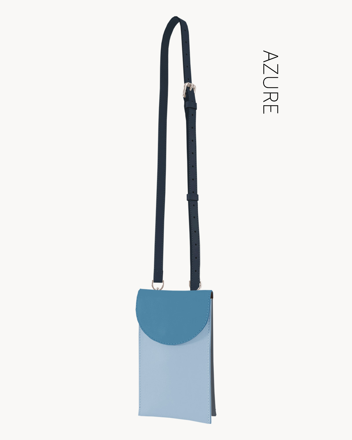 Az U mini táska tricolor – azure – keskeny keresztpánttal egyedi, bőr, minimalista, unisex, crossbody kistáska. Különlegessége, hogy 3 színből áll. A táska fedele, az eleje és a háta is más színű, ami még egyedibbé teszi a táska megjelenését. Gondosan kidolgozott, praktikus és elegáns. Tökéletes lehet egy városi sétára, az esti kikapcsolódáshoz, partyhoz is. A keresztpánttal vagy egy lánccal, akár övvel is kényelmes viselet.